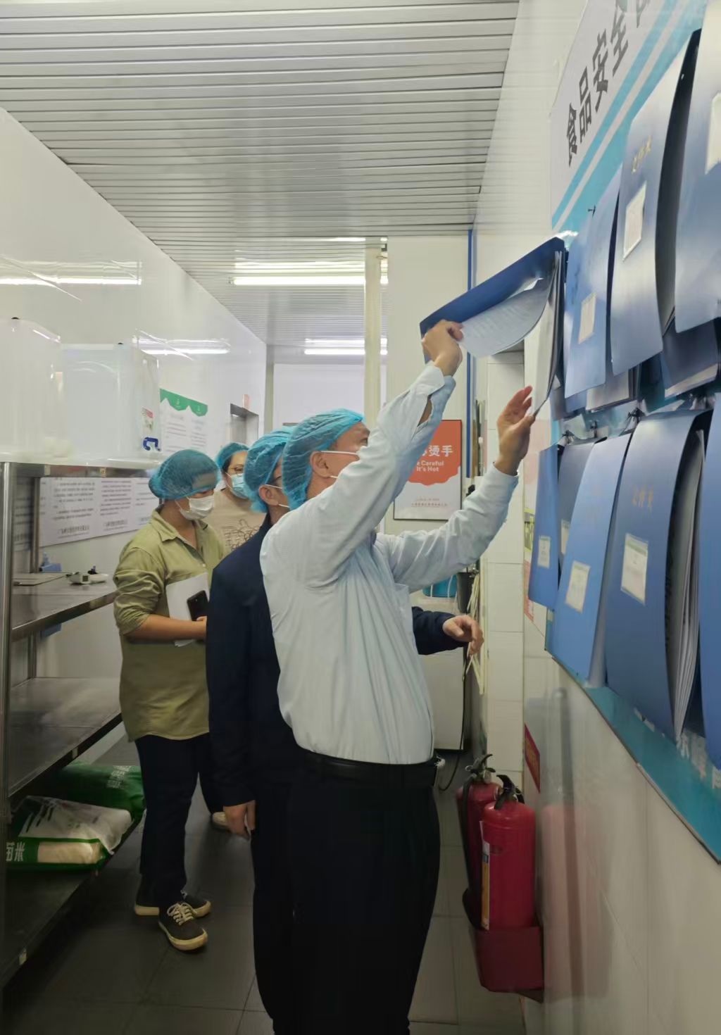 随后,检查组采取“四不两直”方式,深入甘萄园食堂前厅与后厨操作区,实地检查环境卫生、物资存储、台账记录等管理情况,细致了解食材加工、餐具消毒、虫害防治、消防设施配置及日常食品安全监管措施等关键环节。检查组与食堂负责人现场交流,并就存在的问题提出改进意见。