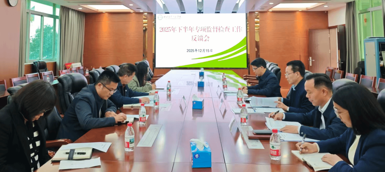 近日,学校分组召开2025年下半年专项监督检查工作反馈会,分别向科学技术部、招投标服务中心两个被检查单位领导班子反馈情况。党委常委、副校长田允波,党委常委、副校长徐玉娟出席会议并提出整改要求。